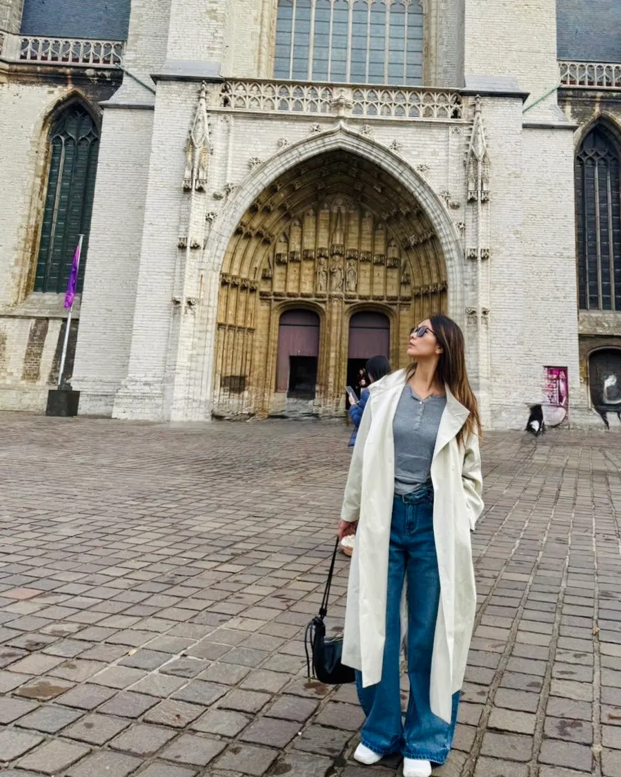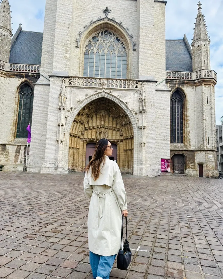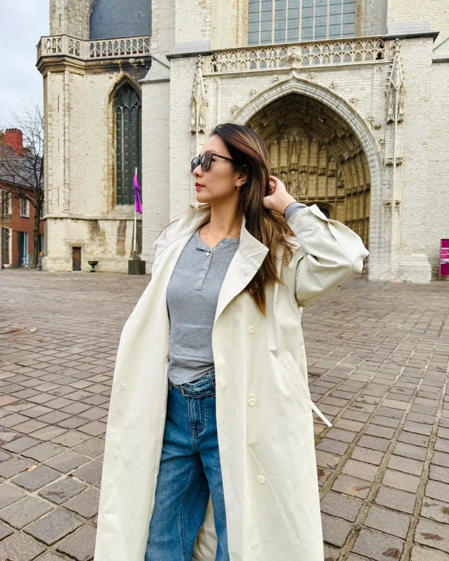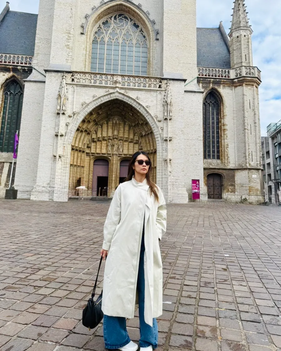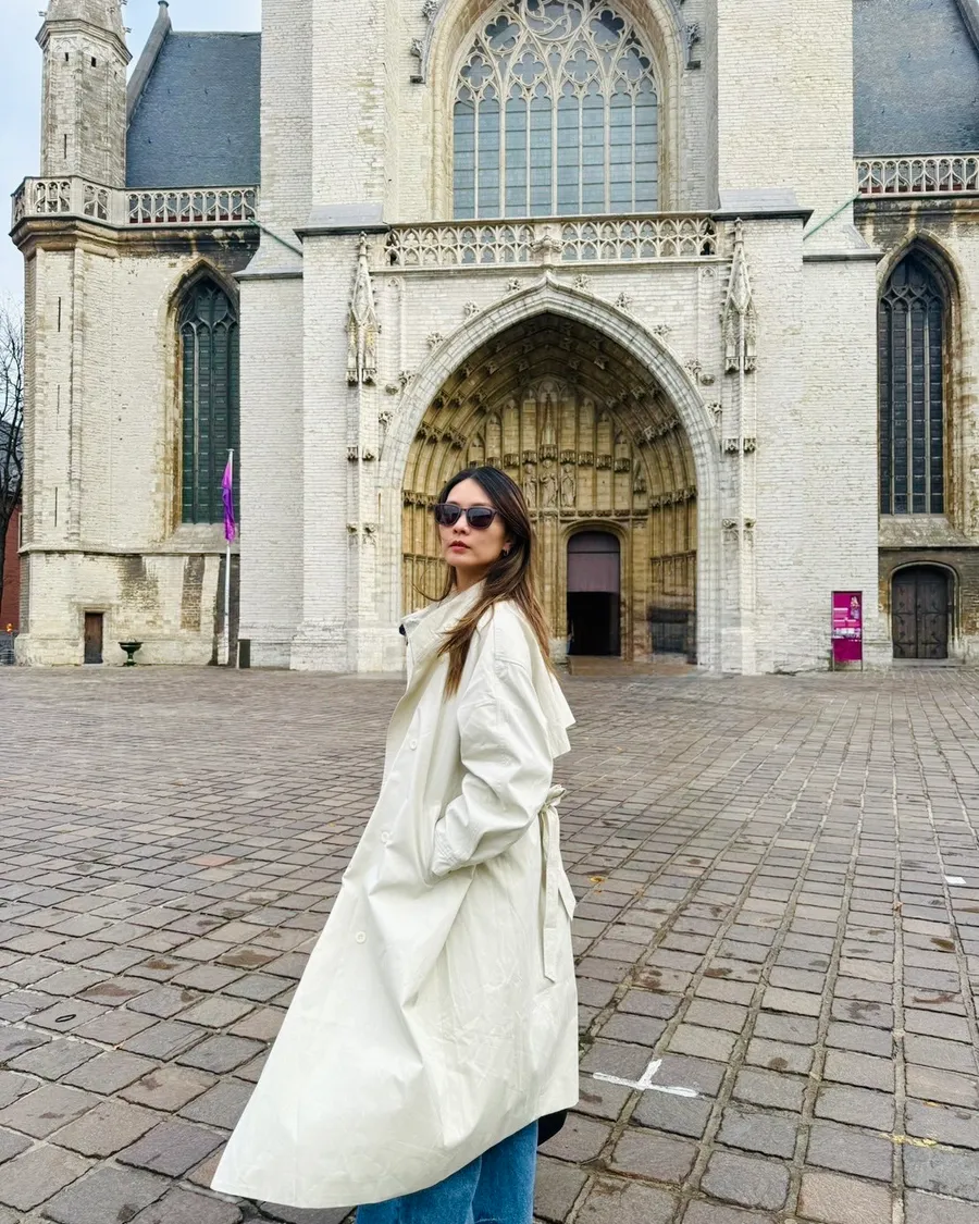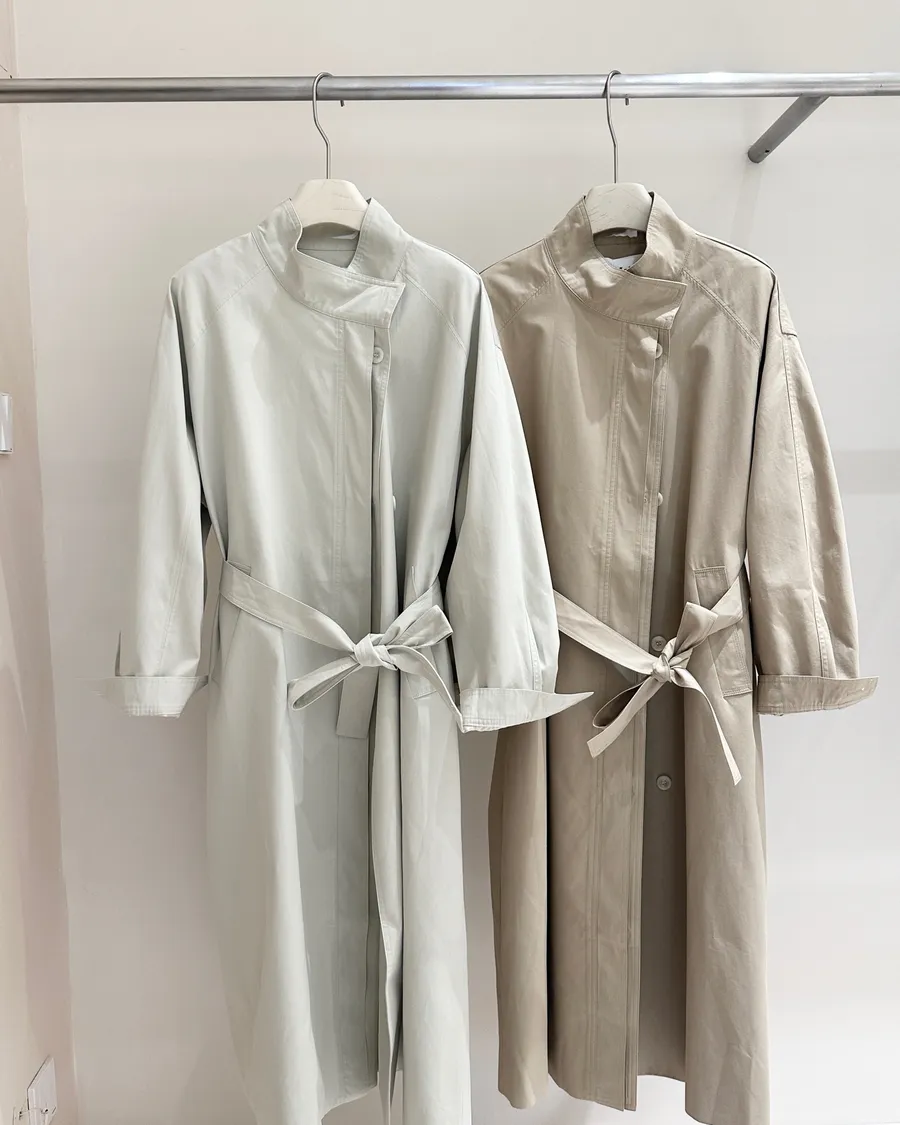 以極簡線條勾勒經典廓形,這件長款風衣選用輕盈挺版布料製成,