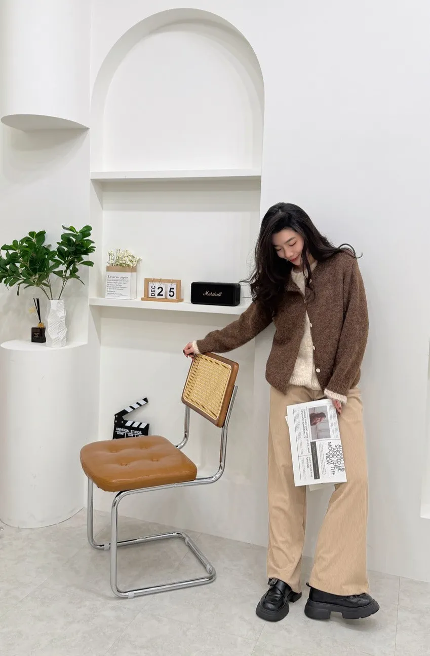 毛衣與外套結合的假兩件式設計