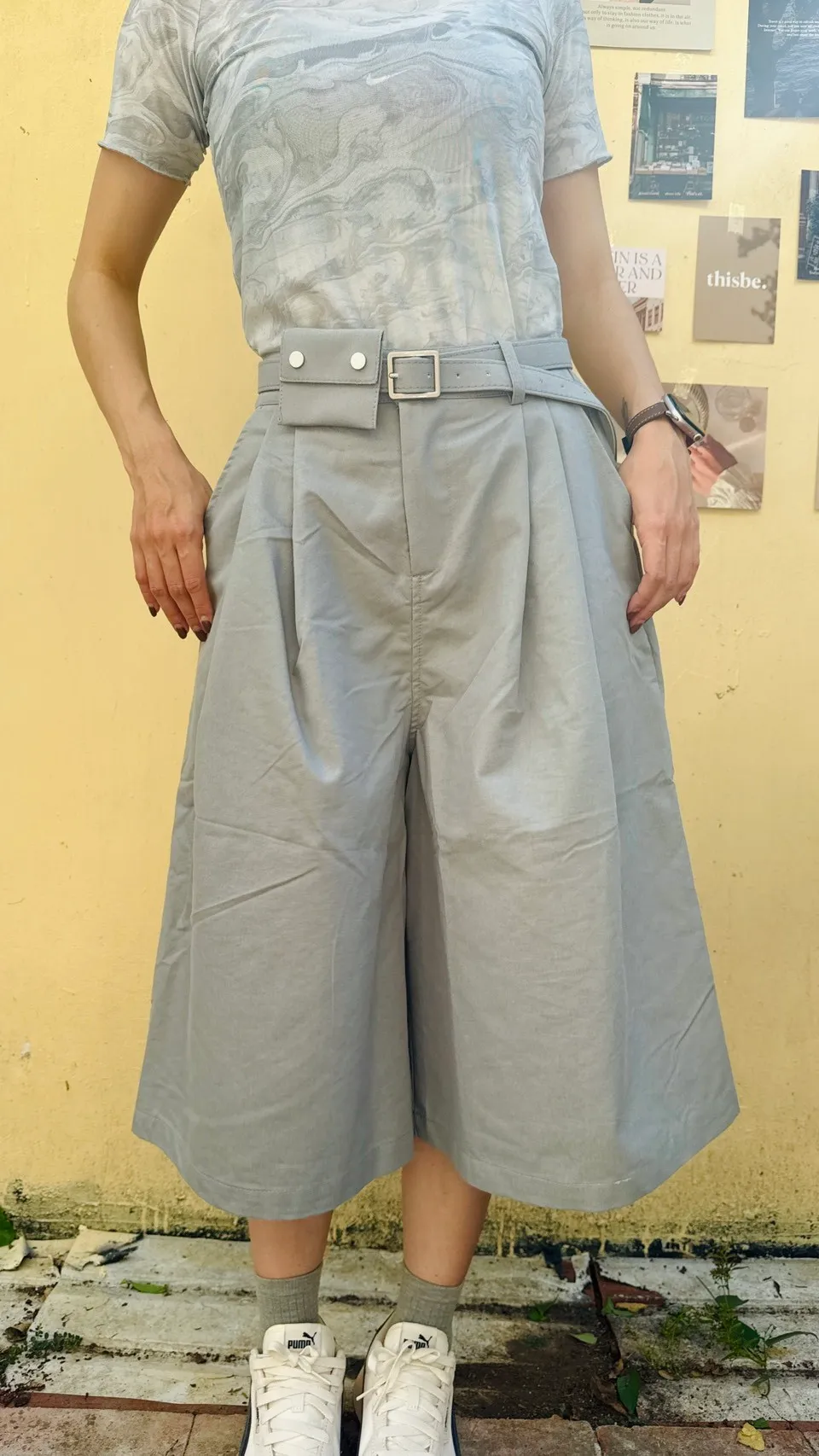 寬版六分褲(附皮帶)